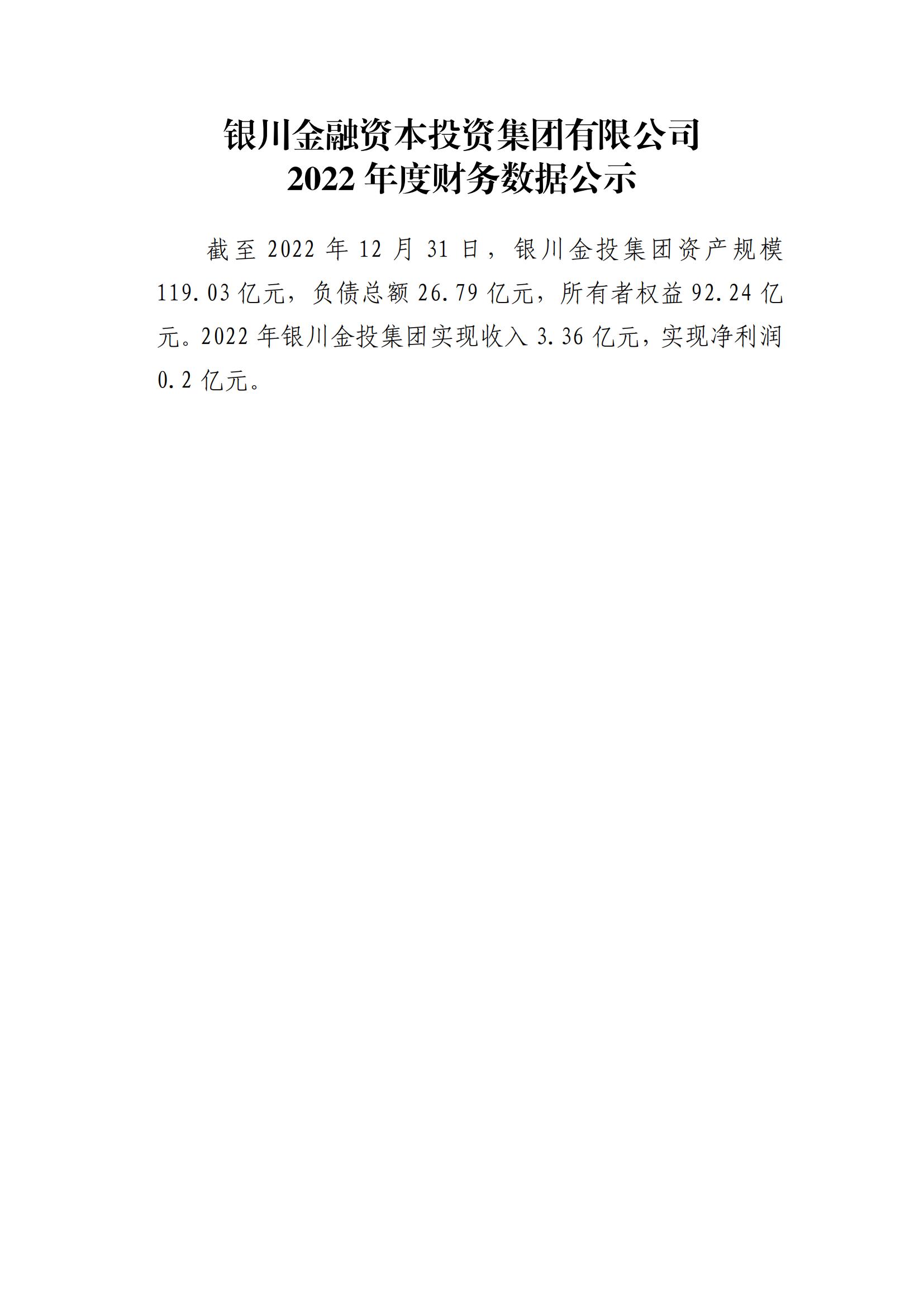 銀川金融資本投資集團(tuán)有限公司2022年度財務(wù)數(shù)據(jù)公示